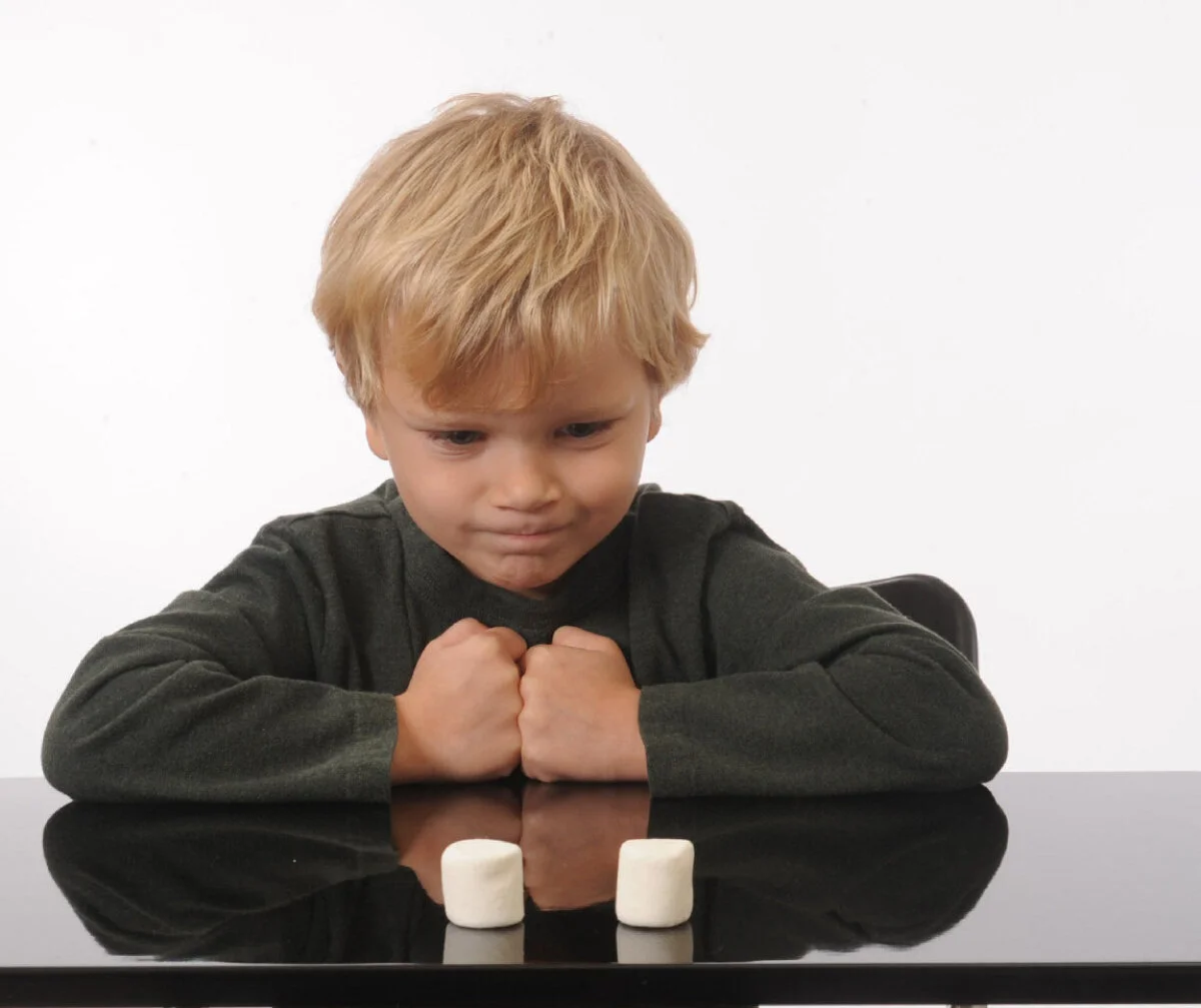 Children were offered a choice between getting one marshmallow now, or two marshmallows in 15 minutes. During this time the child was left alone with the single marshmallow, the temptation was intense but what researchers really wanted to see was whether they could resist an immediate reward for a delayed, greater reward.